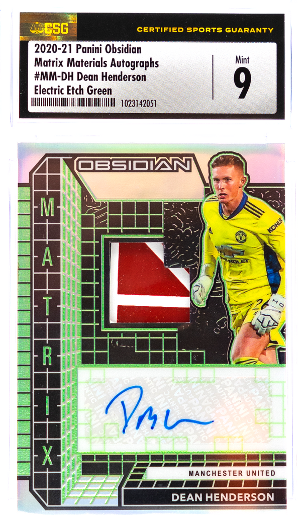 2020-21 Panini Obsidian – Dean Henderson MM-DH – Electric Etch Green /4 – CSG CGC Mint 9 Auto 10