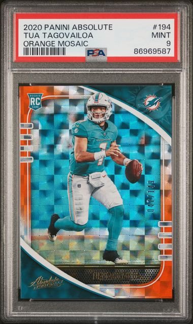 2020 Panini Absolute – Tua Tagovailoa 194 – Orange Mosaic /149 – PSA 9