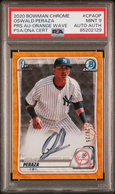 2020 Topps Bowman Chrome – Oswald Peraza CPAOP – Orange Wave 25/25 – PSA 9
