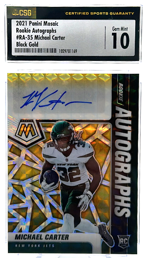 2021 Panini Mosaic – Michael Carter RA-35 – Black Gold /8 – CSG CGC 10 / 10