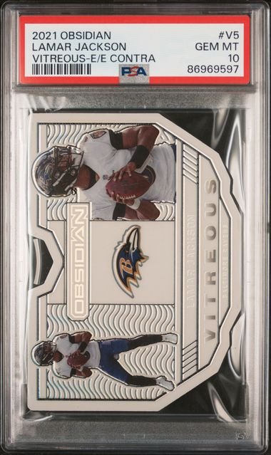 2021 Panini Obsidian – Lamar Jackson V-5 – Vitreous Contra – PSA 10