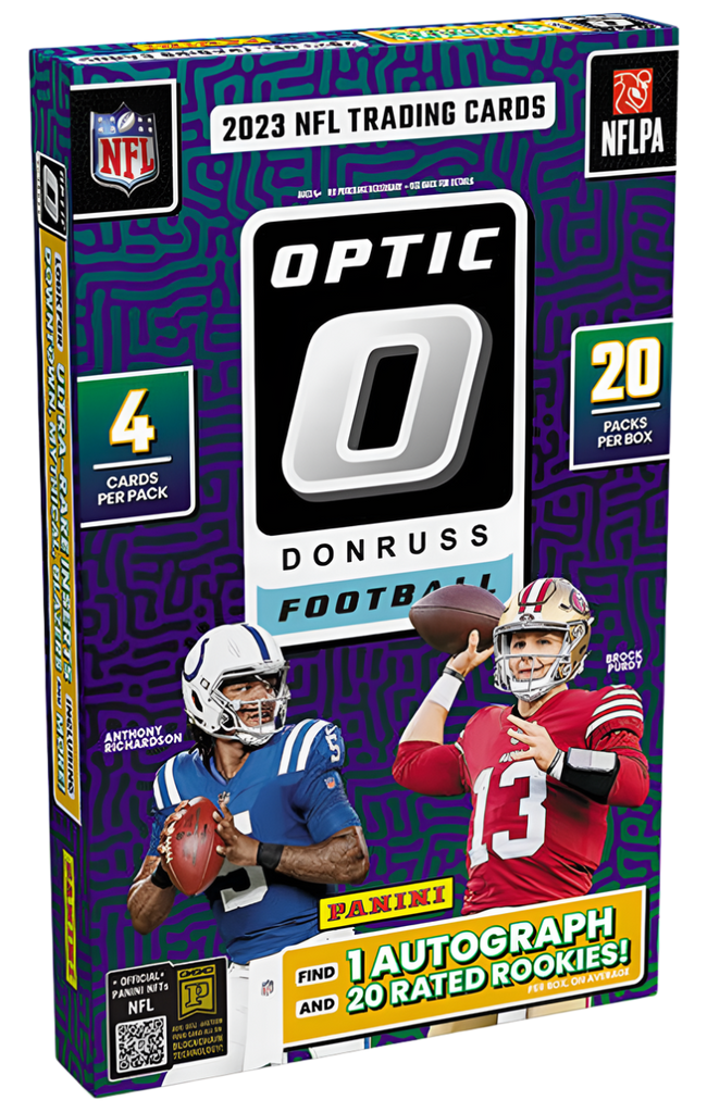 The flagship Donruss Football epically meets Optichrome technology with 2023 Donruss Optic Football, a dynamic product featuring Donruss’ trademark bells and whistles such as Rated Rookies, My House!, Downtown and more.
