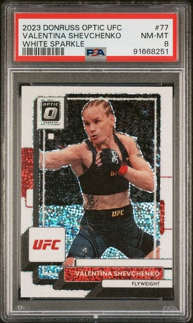2023 Panini Donruss Optic UFC – Valentina Shevchenko 77 – White sparkle – PSA 8