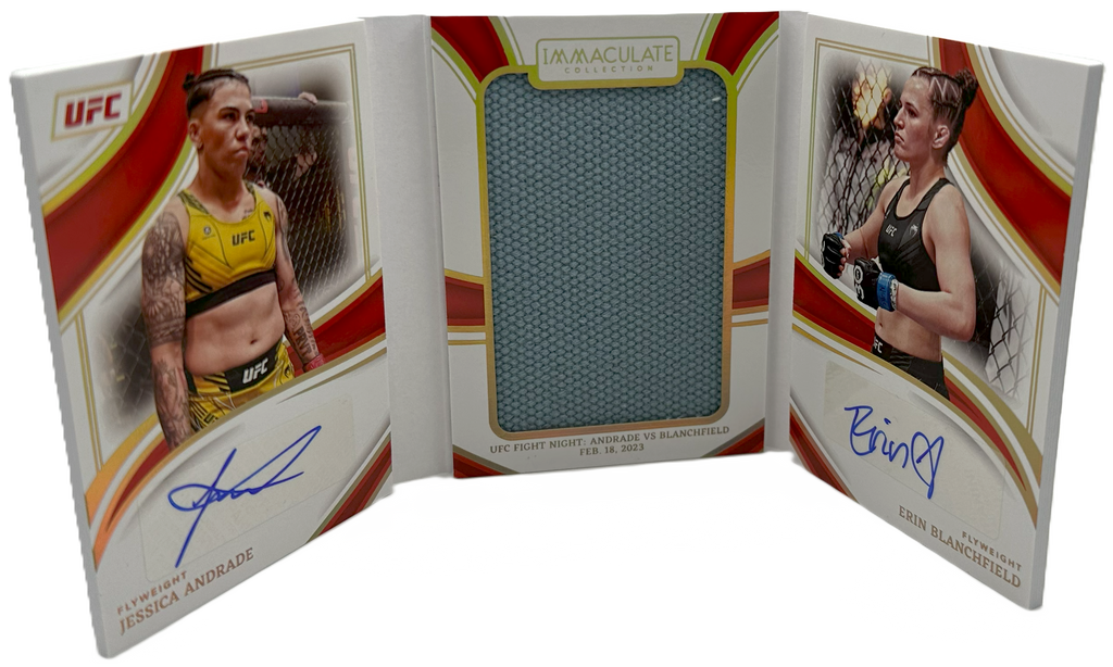 2023 Panini Immaculate UFC – Erin Blanchfield & Jessica Andrade JOC-JE – Jumbo Octagon Dual Booklet Auto /25