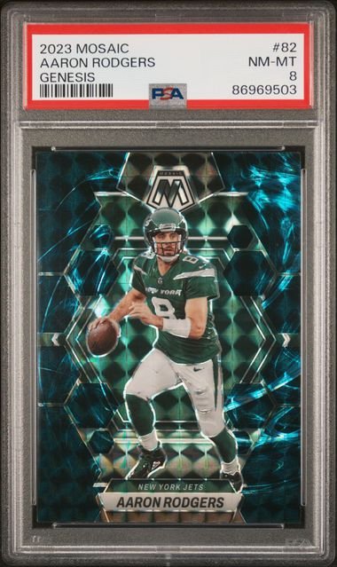 2023 Panini Mosaic – Aaron Rodgers 82 – Genesis – PSA 8