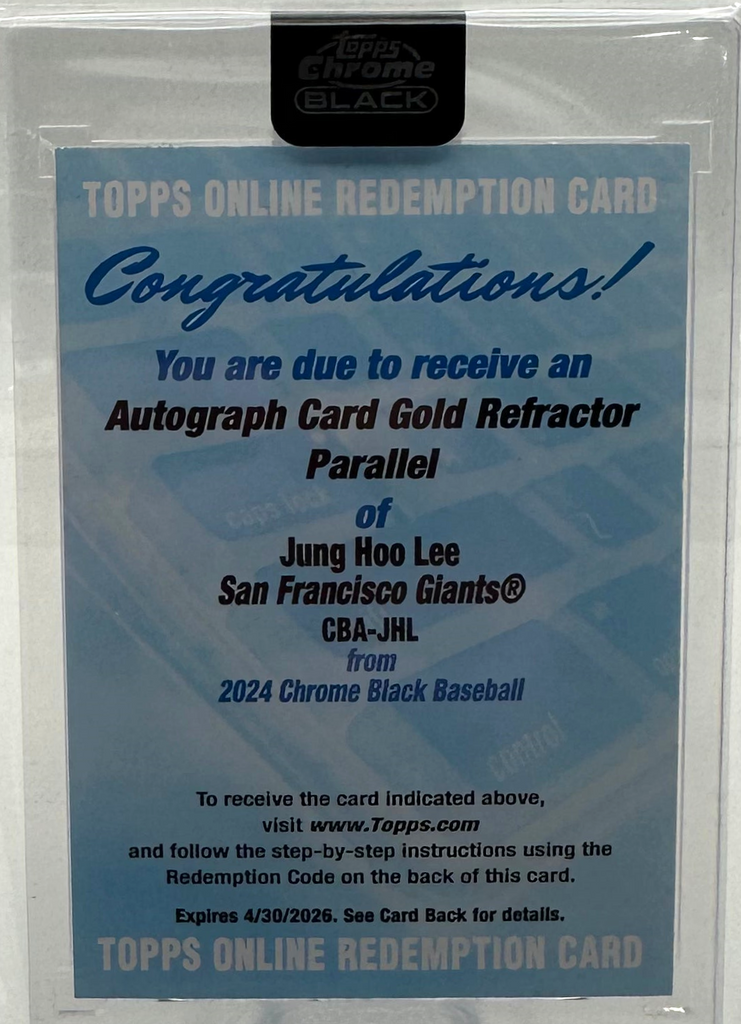 2024 Topps Chrome Black – Jung Hoo Lee Redemption – Gold Auto /50