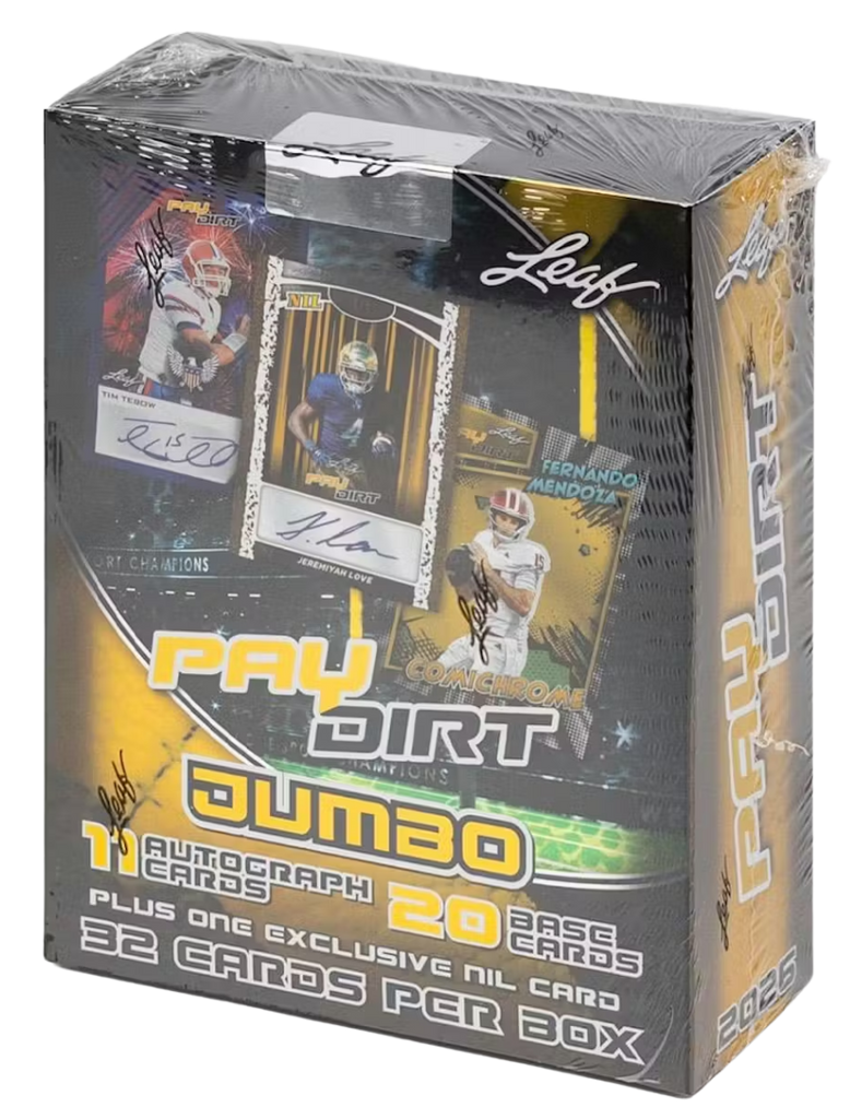Each Box contains 11 Autographs and 1 Exclusive NIL Autograph, on average! Leaf Trading Cards is excited to announce the debut of Leaf Paydirt Football! This inaugural release delivers strong conte…