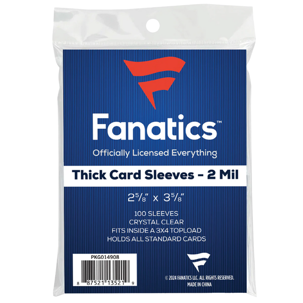 Fanatics soft sleeves are made with premium materials to protect, store, and display your trading cards. Designed to hold thicker cards (e.g., relics), these sleeves offer reliable protection for your collection.