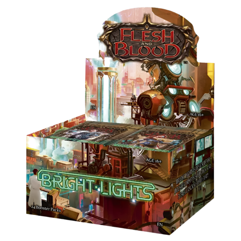Bright Lights takes Flesh and Blood game play to new frontiers of innovation, with the first ever equipment that start the game in your deck. Transform your base equipment into state-of-the-art Evo equipment and construct the mech suit of your dreams!