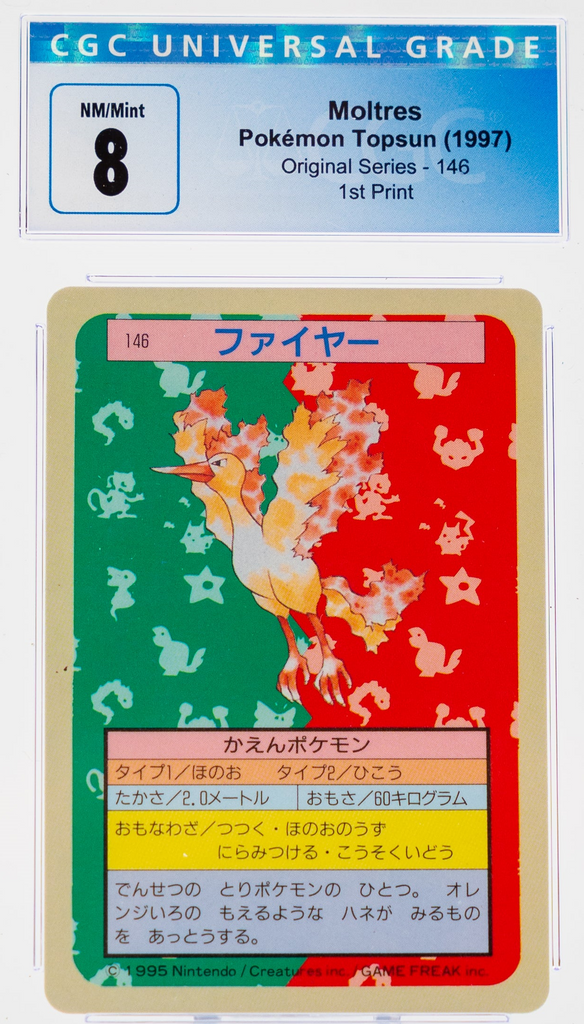 Moltres 146 Topsun 1st Print Blue Back – 1997 Pokemon – CGC 8